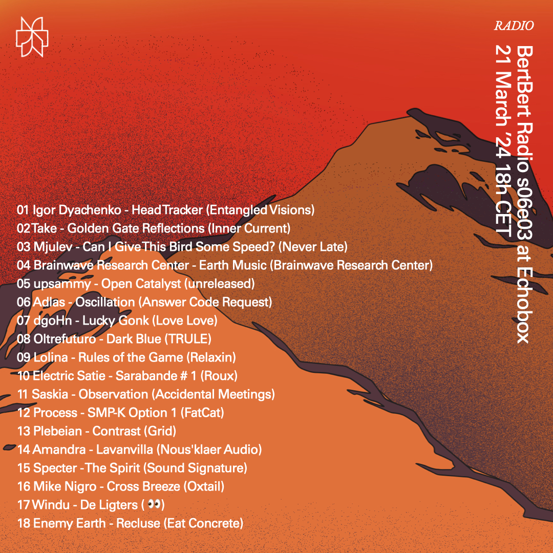 Another day, another tracklist. March’ episode of BB-radio is ready for playback and an hour of ambient, electronics, and brainy dance music awaits you. Some spoilers on what to expect: